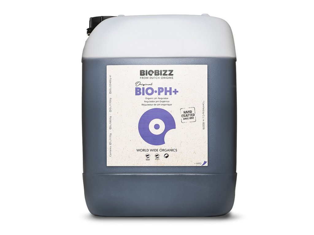 BioBizz Bio-pH+ wurde speziell für den Bereich des ökologischen Landbaus entwickelt. Eine natürliche pH-Wert-Anpassung ist für Pflanzen entscheidend, um die maximale Menge an Nährstoffen aufzunehmen. Die natürliche Zusammensetzung von Biobizz pH+ ermöglicht eine schnelle pH-Wert-Anpassung für jede Art von Substrat und jede Art von Pflanze, ohne die Mikrobiologie des Bodens zu beeinträchtigen. Biobizz pH+ ist ein pH-Regulator auf Basis von Humin-Säuren, die aus natürlichen Quellen gewonnen werden, speziell entwickelt für Züchter, die in ihrem Wachstum alles organisch haben möchten, von der Saat bis zur Ernte. Er ist so konzipiert, dass er perfekt mit den Biobizz Nährstoffen arbeitet. Es ist empfehlenswert, ihn sowohl während der Vegetations- als auch der Blütezeit zu verwenden.