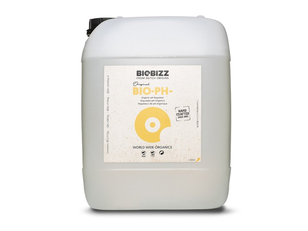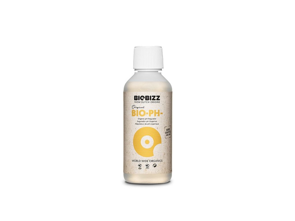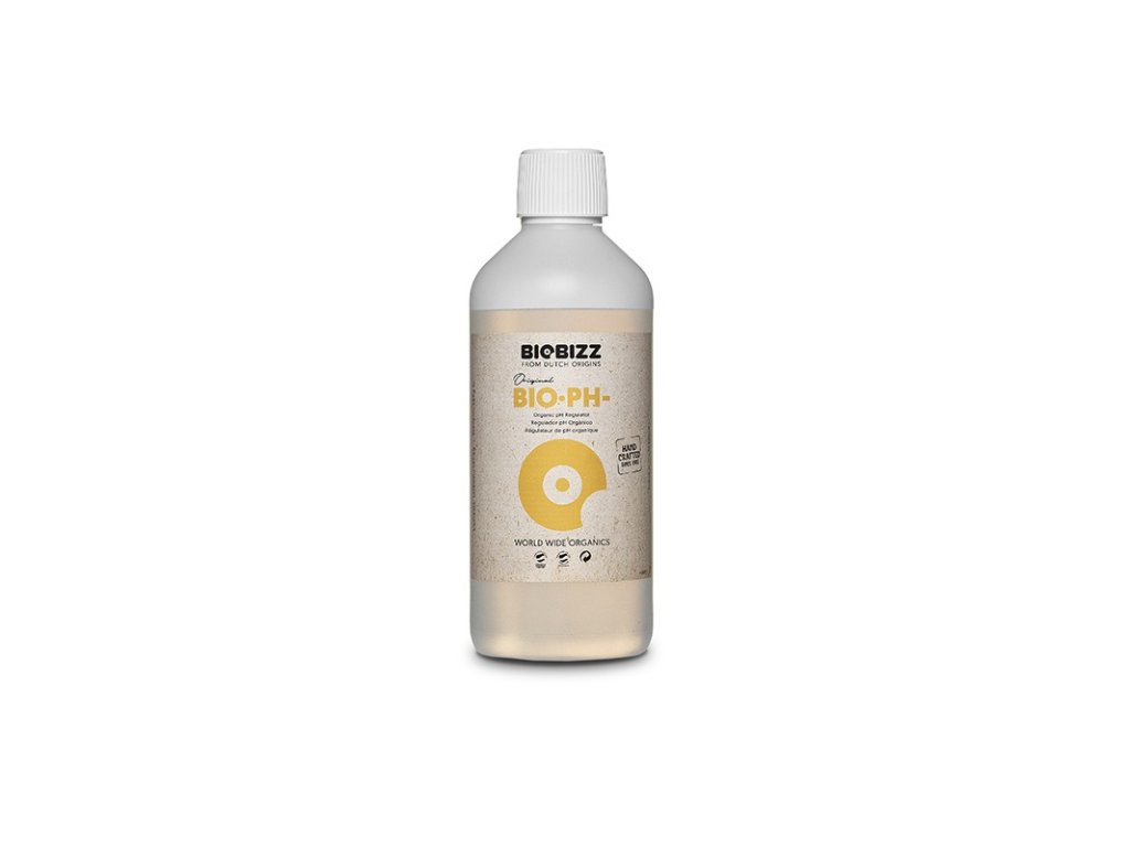 Biobizz pH- wurde speziell für den Bereich des ökologischen Landbaus entwickelt. Die Anpassung des pH-Wertes auf natürliche Weise ist für Pflanzen essentiell, um die maximale Menge an Nährstoffen zu absorbieren. Die natürliche Mischung Biobizz pH- ermöglicht eine schnelle Anpassung des pH-Wertes für jeden Substrattyp und jede Art von Pflanze, ohne das mikrobielle Bodenleben zu schädigen. Es handelt sich um eine wässrige Lösung, die aus Zitronensäure hergestellt wird, die sich natürlich in verschiedenen Zitrusfrüchten befindet. Sie ist so konzipiert, dass sie perfekt mit den Biobizz Nährstoffen arbeitet und bei jeder Bewässerung verwendet werden kann. Es ist empfehlenswert, sie sowohl während der Vegetations- als auch der Blütezeit zu verwenden.