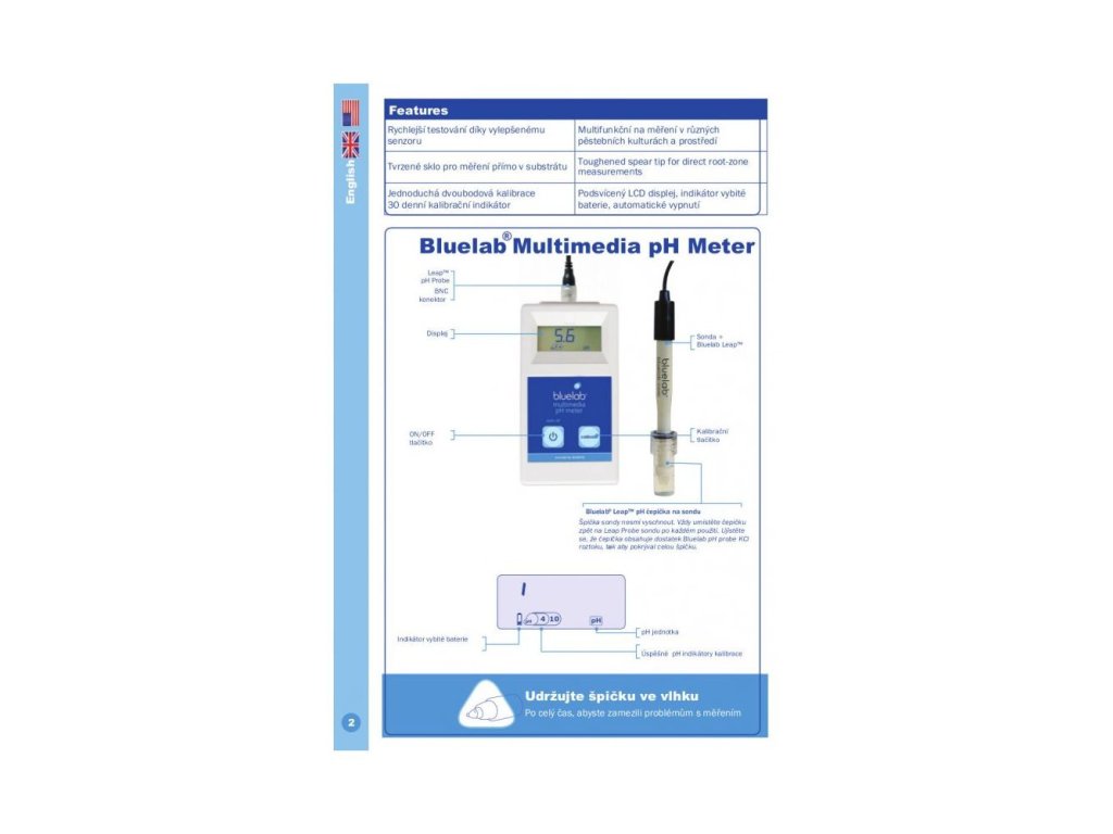 Die Zweipunkt-Kalibrierung ist einfach und kann mit nur einem Knopf und der Bluelab-Kalibrierlösung durchgeführt werden. Nach erfolgreicher Kalibrierung leuchtet ein spezielles Piktogramm auf dem Display auf. Wenn es verschwindet, ist es Zeit für eine neue Kalibrierung. Nach dem Auslaufen der Bluelab Leap Probe kann eine neue erworben werden, sodass das gesamte Bluelab Multimedia pH Meter nicht ausgetauscht werden muss.