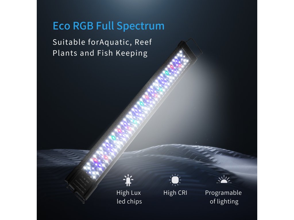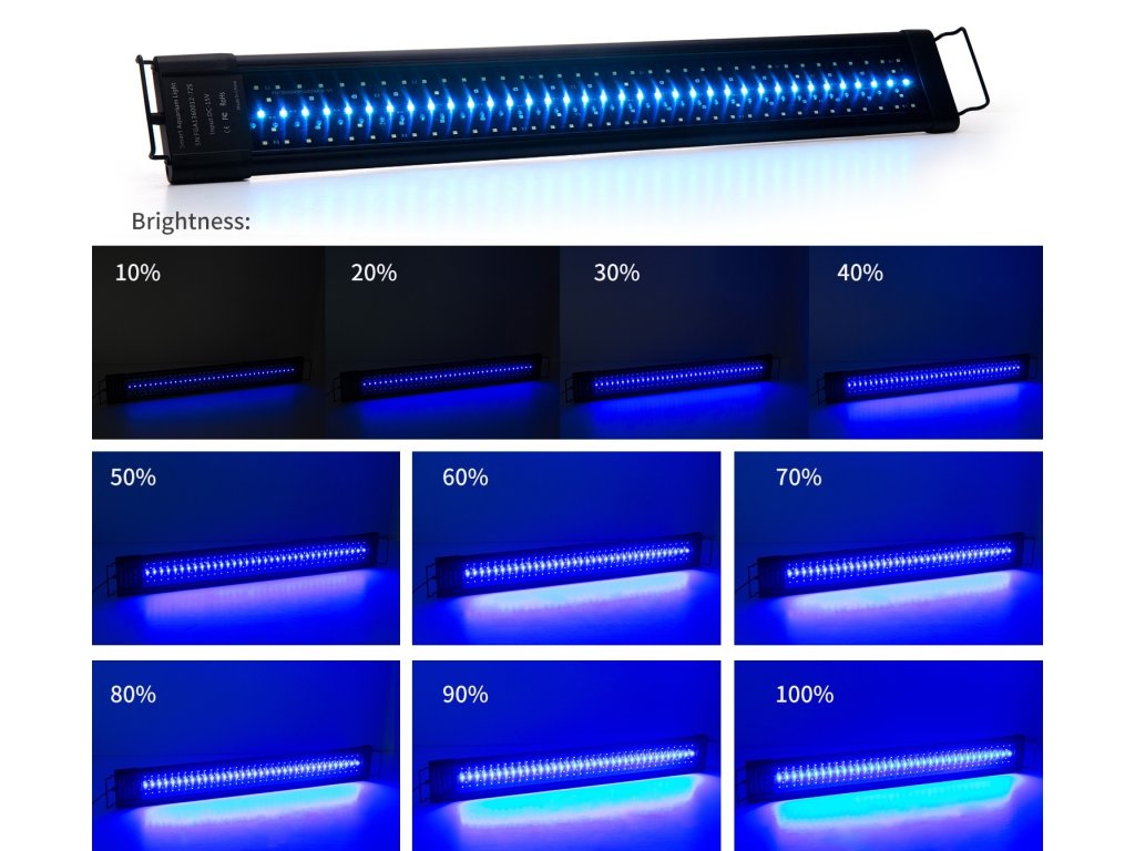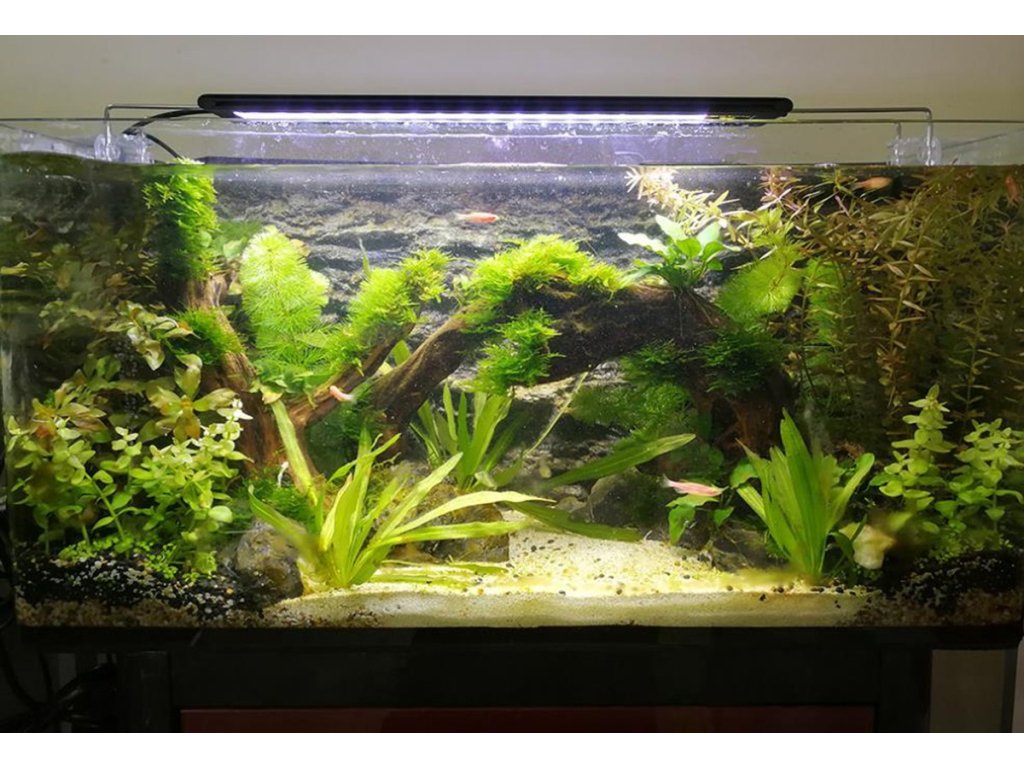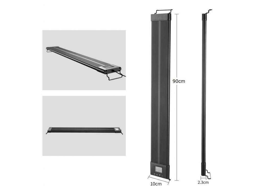 Dies ist eine hochwertige Aquarienleuchte mit einer Gesamtleistung von 30W, die absolut alles hat, was Sie für die Beleuchtung Ihres Aquariums benötigen. Sie verfügt über eine programmierbare Einheit, die es Ihnen ermöglicht, die Intensität natürlich zu dimmen, um Sonnenaufgang und Sonnenuntergang zu simulieren, was den Stress für Fauna und Flora reduziert. Ein weiterer unbestreitbarer Vorteil ist die Flexibilität der Leuchte selbst. Das ist bei der Installation sehr praktisch, denn auf jeder Seite der Leuchte befindet sich eine verschiebbare Halterung, die Sie an den Aquarienwänden befestigen können. So können Sie die Größe um bis zu 10 cm auf jeder Seite verstellen.