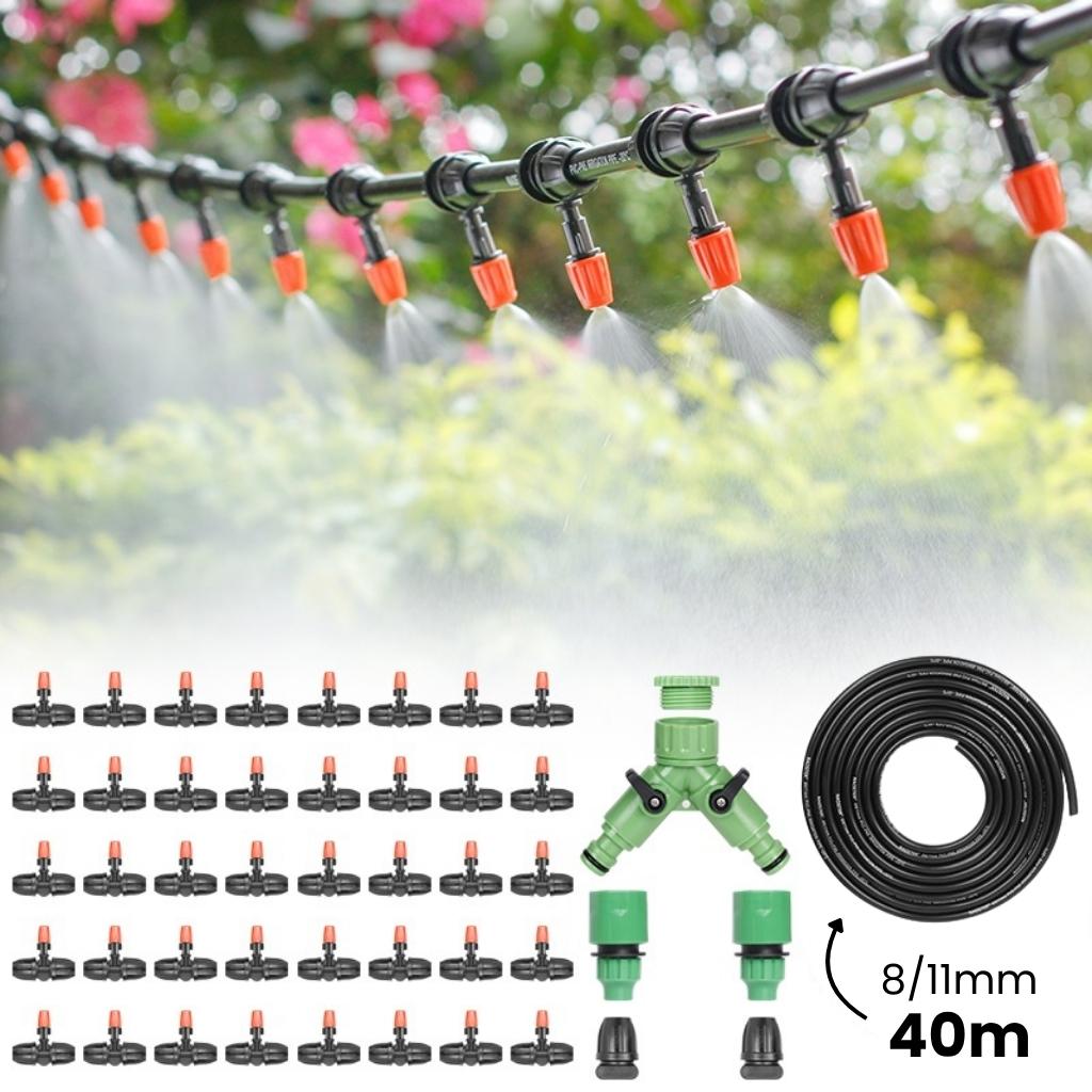 Bewässerungssystem für Gewächshäuser und Blattpflanzen mit einfacher Installation. Das Paket enthält alle Komponenten für einen einfachen Anschluss des Bewässerungssystems. 40 Meter fester Schlauch mit einem Durchmesser von 8/11 mm ermöglichen die Bewässerung beider Seiten eines Gewächshauses von 20 Metern. Wenn Sie ein langes Beet haben, kann dies auch für nur eine Bewässerungsreihe verwendet werden.