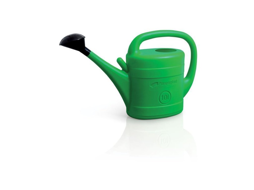 Eine klassische grüne Gießkanne für den modernen Garten, mit abnehmbarem schwarzen Sprühkopf. Die Gesamtkapazität des Behälters beträgt 10 Liter. Ein Material für eine lange Lebensdauer.