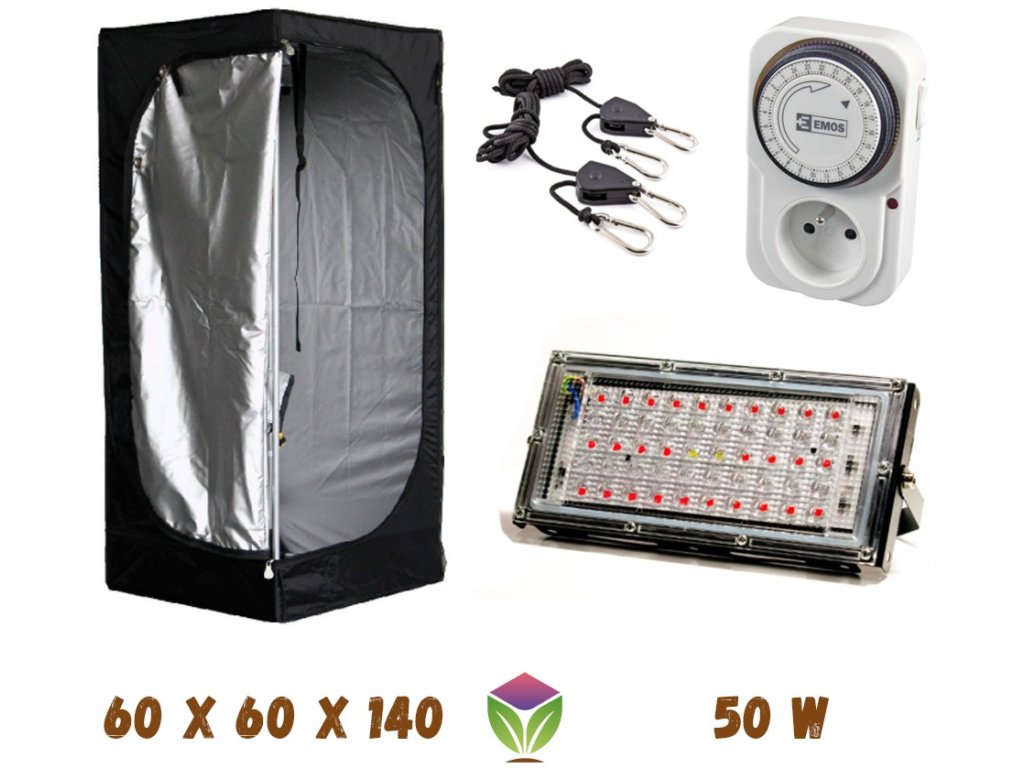 Growzelt 60x60x140 mit LED pflanzenlampe 50W