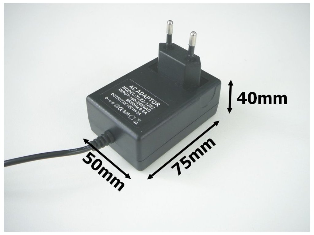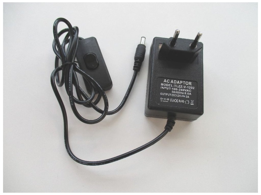 LED-Netzteil für Steckdose mit Ausgangsspannung 12V ausgelegt für LED-Streifen. Wählen Sie den Transformator (LED-Netzteil) entsprechend der benötigten Leistung für Ihren LED-Streifen und fügen Sie immer mindestens 20% Reserve hinzu.