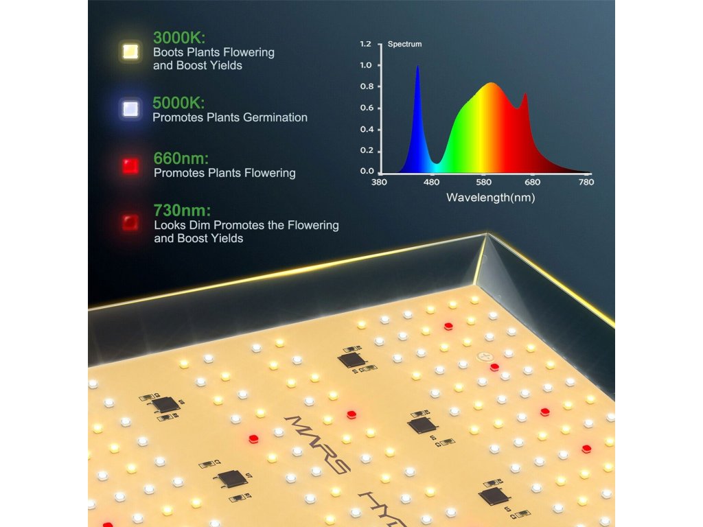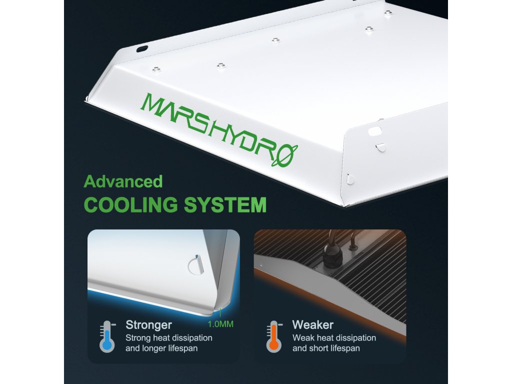 Die Mars Hydro LED-Leuchten sind energieeffizient und bieten doppelt so viel Lichtleistung pro Watt im Vergleich zu traditionellen HPS- und MH-Leuchten. Sie sind auf lange Lebensdauer und Energieeinsparung ausgelegt.