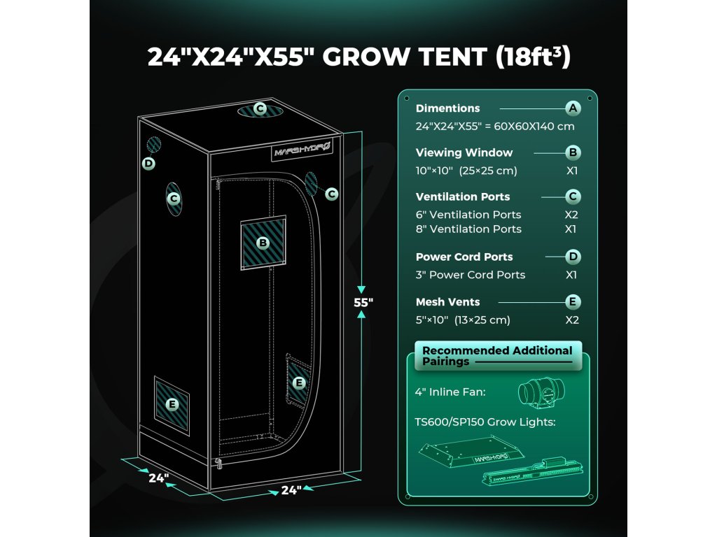 Unser Mars Hydro SET 100W TS600 mit den Maßen 60x60x140 cm ist die ideale Lösung für Erstanbauer oder diejenigen, die ihren begrenzten Raum für den Indoor-Anbau intelligent verwalten müssen. Das komplette Set ist ideal für die Entwicklung von Mutterpflanzen oder für die Aufzucht von 1-2 kleinen bis mittelgroßen Pflanzen während des gesamten Lebenszyklus.