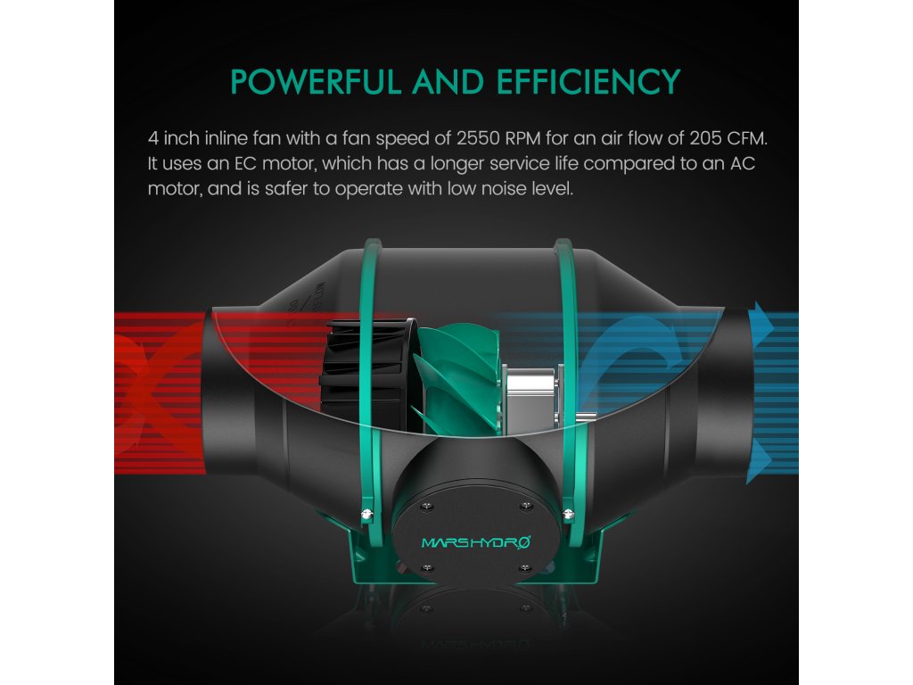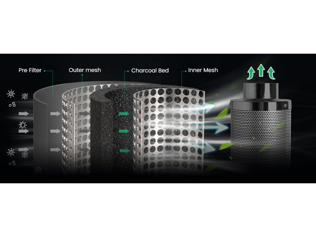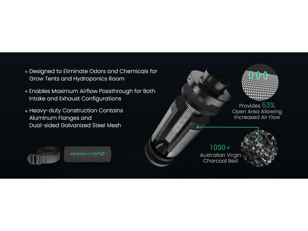 Der Mars Hydro Lüfter mit gemischter Strömung bringt aktiv Luft mit 2800 Umdrehungen pro Minute und einer Durchflussrate von 500m3/h in Ihren Growraum. Er ist mit einem Geräuschpegel von nur 32 dB leise im Betrieb und verfügt über hochwertige australische RC 48 Aktivkohle und 7,6 m flexible Rohrleitungen.