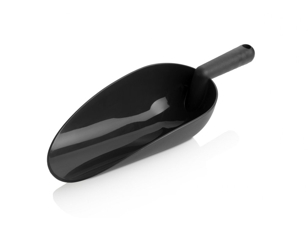 Große Kunststoff-Pflanzschaufel in Anthrazitfarbe.