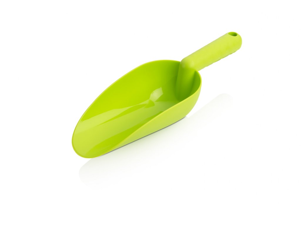 Kleine Kunststoff-Pflanzschaufel in hellgrün.