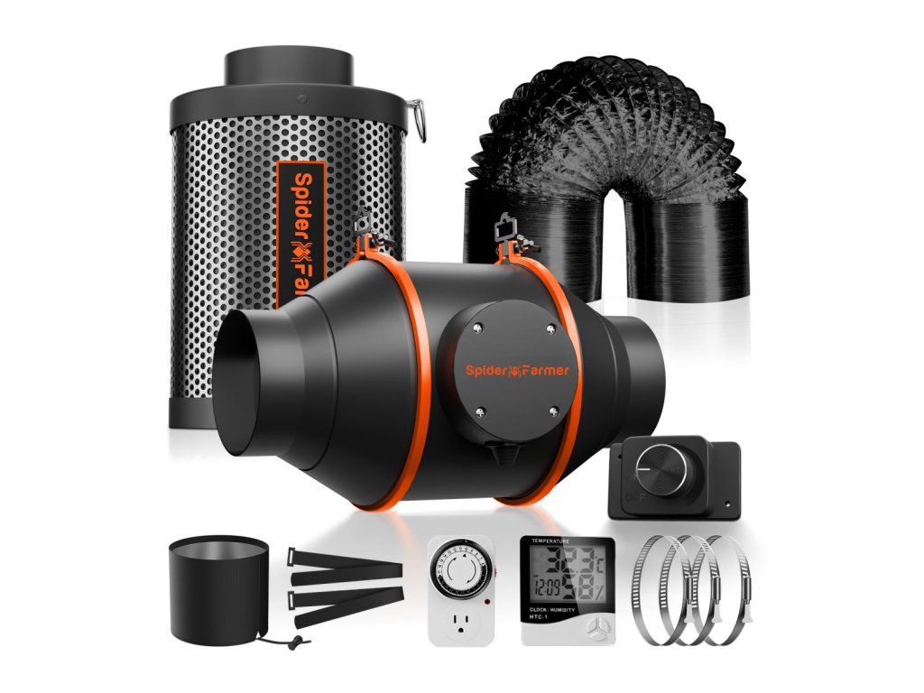 Spider Farmer 102 mm Inline-Ventilator 348 m³/h, Drehzahlregler