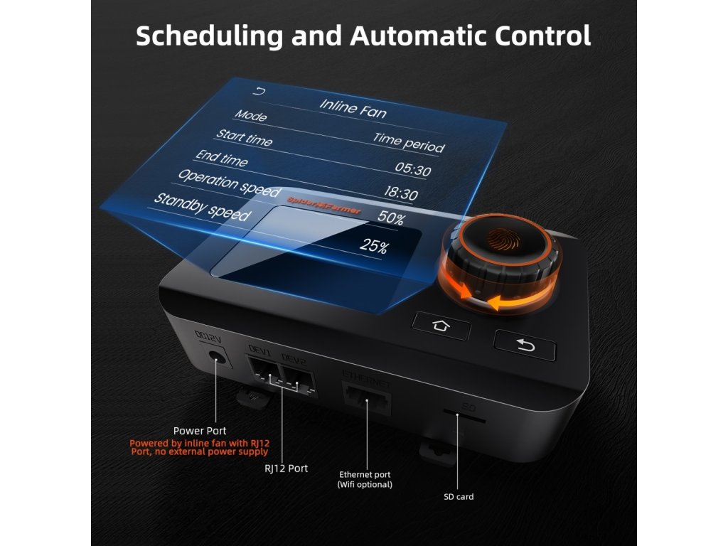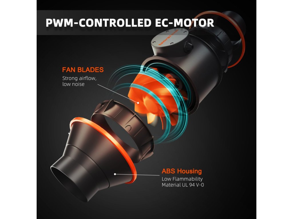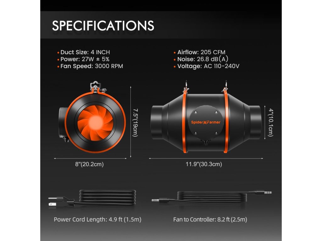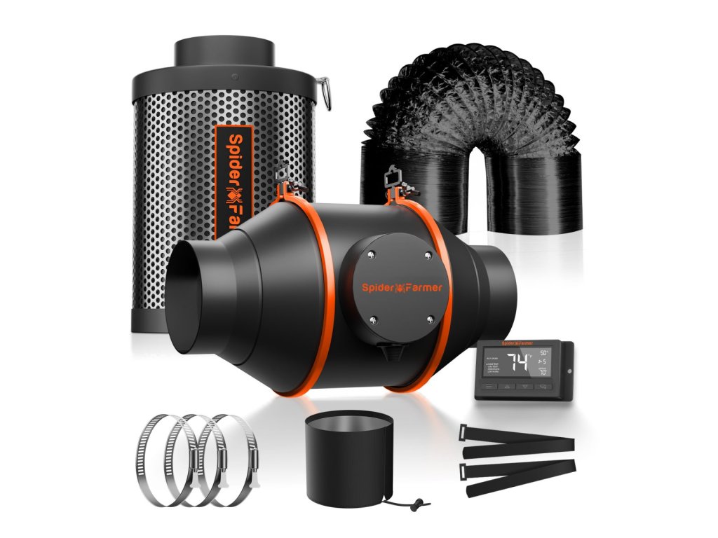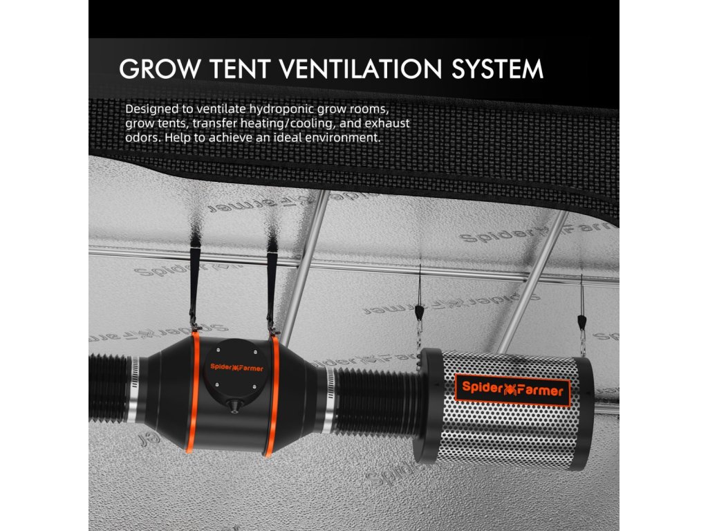 Spider Farmer 102 mm Inline-Ventilator 348 m³/h, programmierbarer Regler