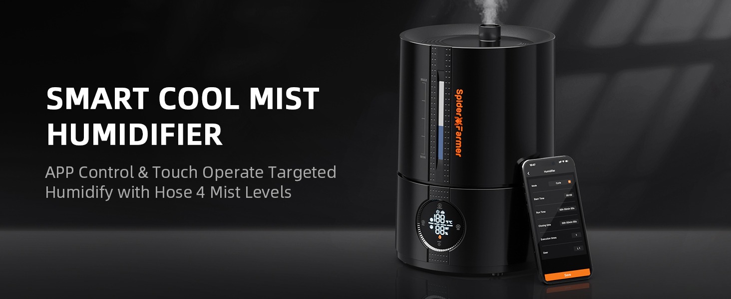 Halten Sie Ihre Pflanzen in einer optimalen Umgebung mit dem Spider Farmer Pflanzen-Luftbefeuchter (5L). Dieser fortschrittliche Luftbefeuchter wurde für Indoor-Gärten, Growzelte und kleine Anbauräume entwickelt und bietet die ideale Kombination aus Luftfeuchtigkeit, Temperatur und Komfort.