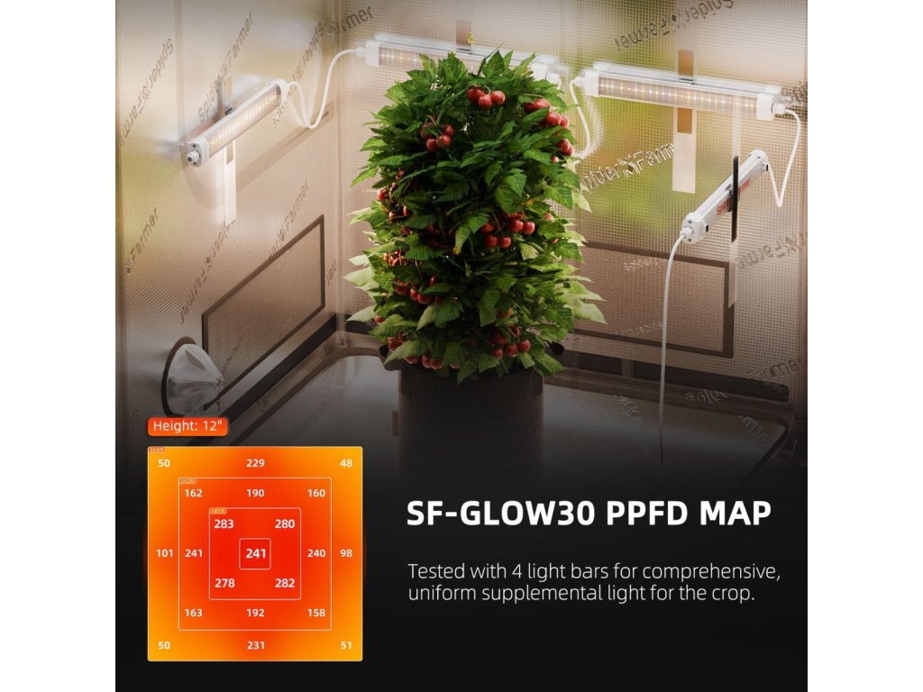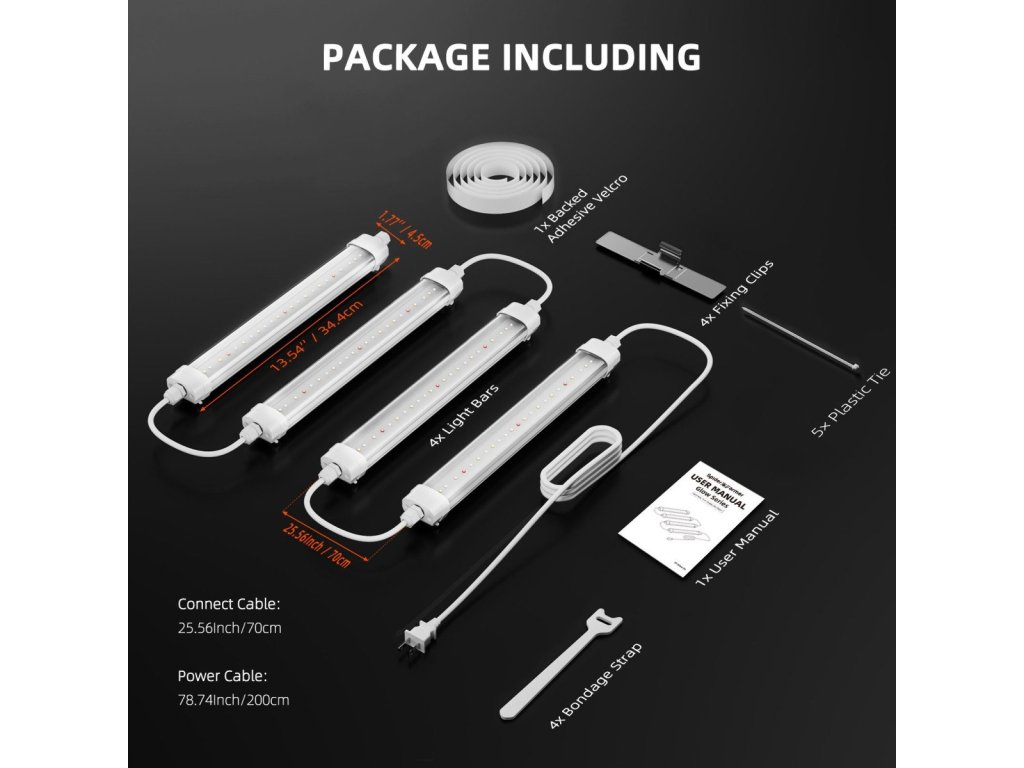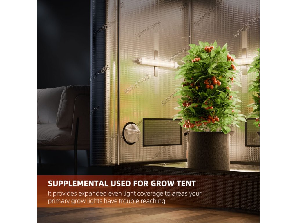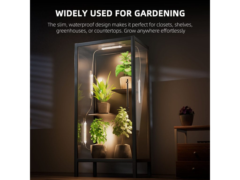 Zusätzliche Beleuchtung Vier ca. 33 cm lange LED-Streifen beleuchten effektiv die unteren Teile oder Seiten der Pflanzen und erweitern die Lichtabdeckung dort, wo das Hauptwachstumslicht nicht hinkommt. Optimieren Sie Ihr Anbausystem und steigern Sie den Ertrag Ihrer Pflanzen. -