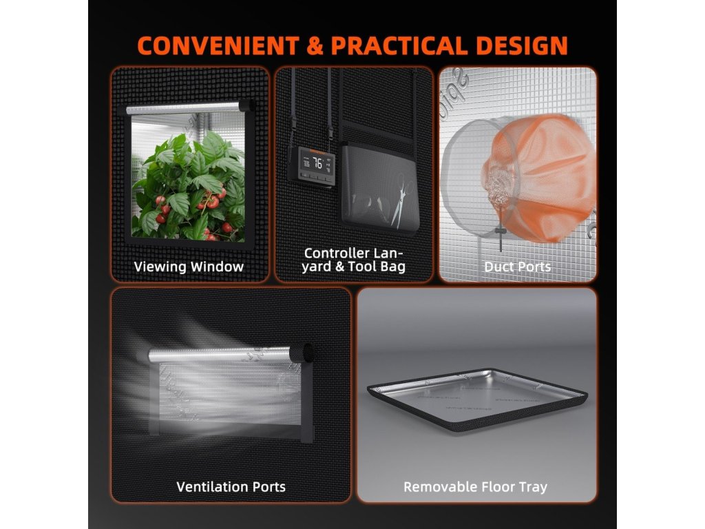 - Zwei Sichtfenster (außen 30 × 30 cm, innen 25 × 25 cm) ermöglichen es Ihnen, die Pflanzen einfach zu überprüfen, ohne das Zelt zu öffnen.