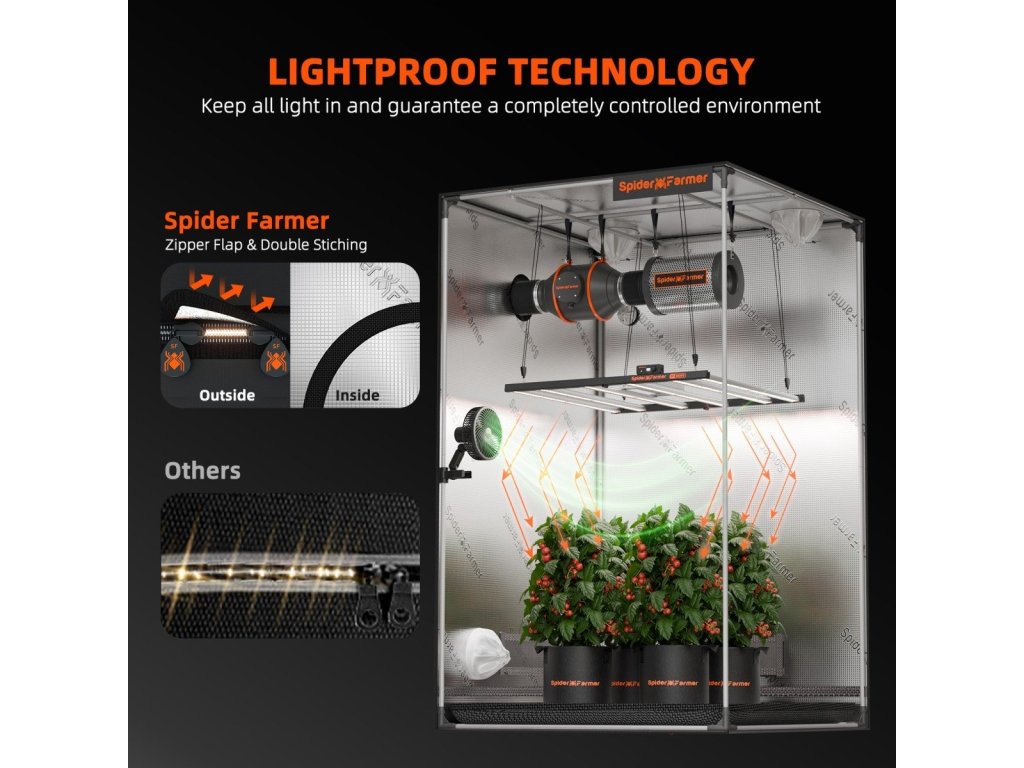 Die Schlüsseleigenschaften des Spider Farmer 120×60×150 cm Anbauzelts