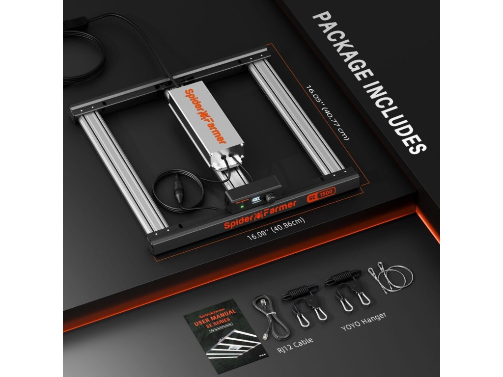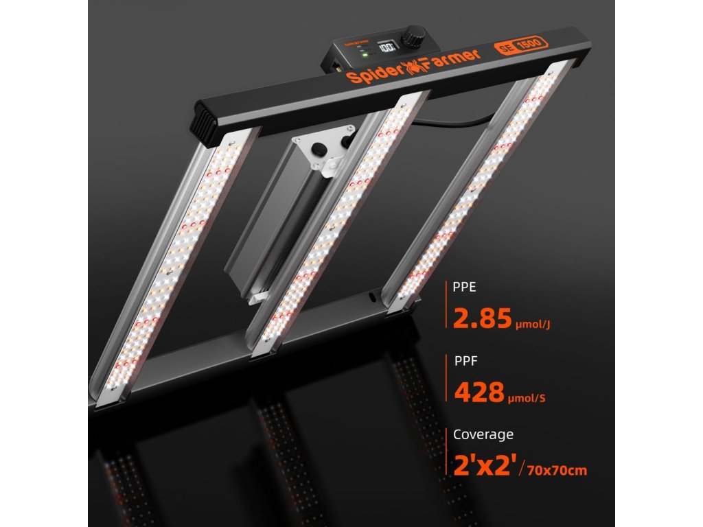 Der Spider Farmer SE1500 ist eine hochleistungsfähige LED-Wachstumslampe, die für maximale Effizienz beim Pflanzenwachstum in Innenräumen konzipiert wurde. Dank den hochwertigen Dioden Samsung LM301H EVO bietet sie den Pflanzen ein hochwertiges Lichtspektrum in jeder Wachstumsphase – von Keimlingen bis zur Blütenphase.
