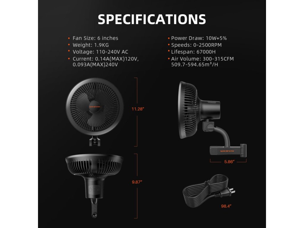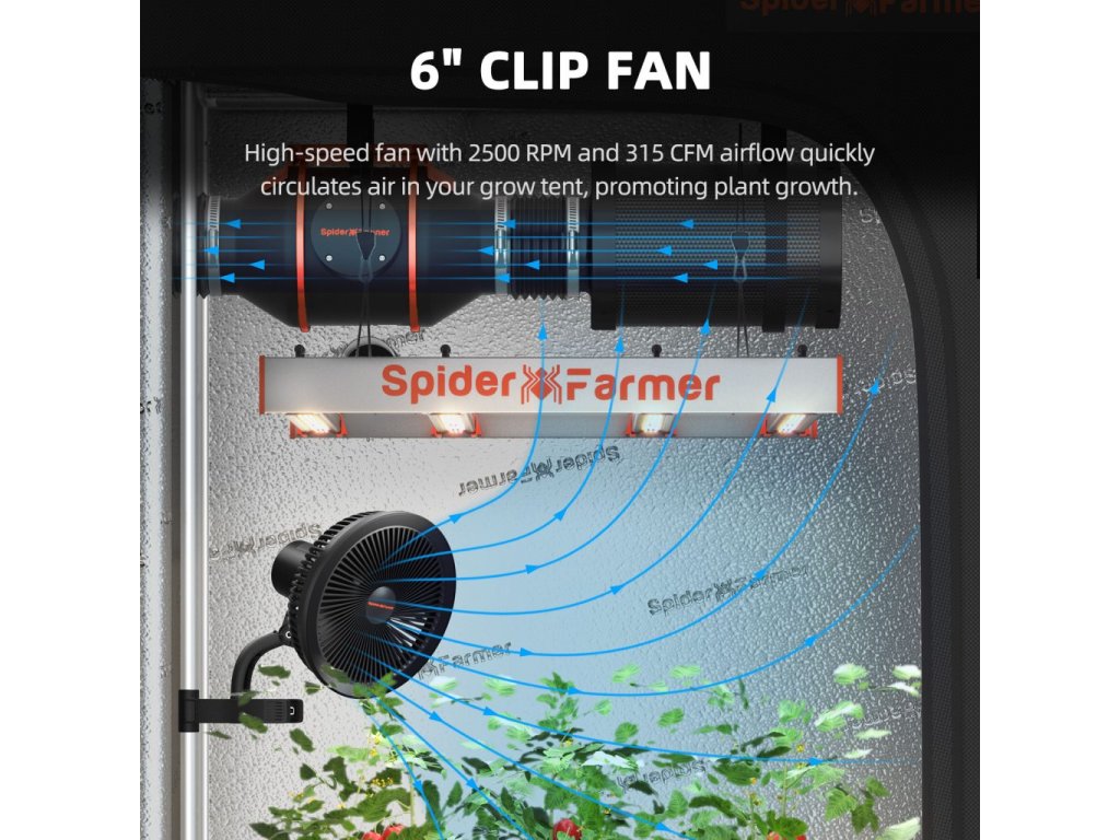 1 × 6" Umwälzlüfter. Er trägt dazu bei, das Risiko von Schimmel, Fäulnis und Schädlingen zu verringern und gleichzeitig die Temperatur und Luftfeuchtigkeit zu optimieren, um das Wachstum zu beschleunigen und reiche Erträge zu erzielen.