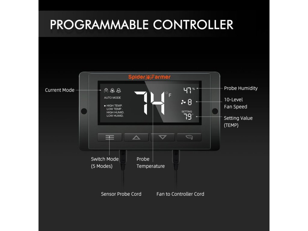 1 × Digitaler Temperatur- und Feuchtigkeitsregler für den Ventilator: Dieser intelligente Regler ermöglicht die Einstellung idealer Bedingungen im Zelt. Er verfügt über mehrere Betriebsmodi, 10 Lüftergeschwindigkeiten sowie einfache Einstellungen für Feuchtigkeit und Temperatur. Der Ventilator passt seine Leistung automatisch an, um die von Ihnen gewünschte Temperatur und Luftfeuchtigkeit zu erreichen. |