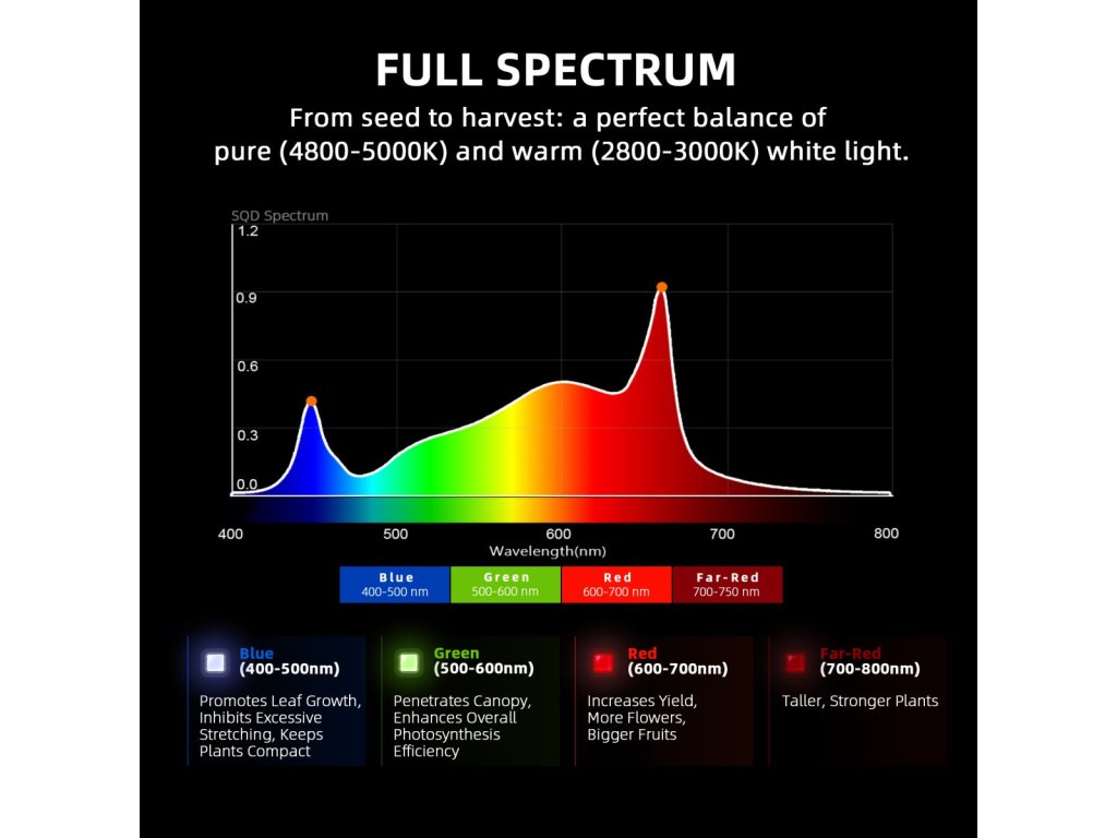 Spektrum: | 2800-3000K, 4800-5000K, 660-665nm, 700-800nm |
