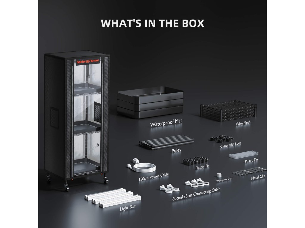 Schaffen Sie mit diesem innovativen Set von Spider Farmer eine kompakte und effiziente Umgebung für Ihren Garten, die das gesunde Wachstum Ihrer Pflanzen zu jeder Jahreszeit fördert.