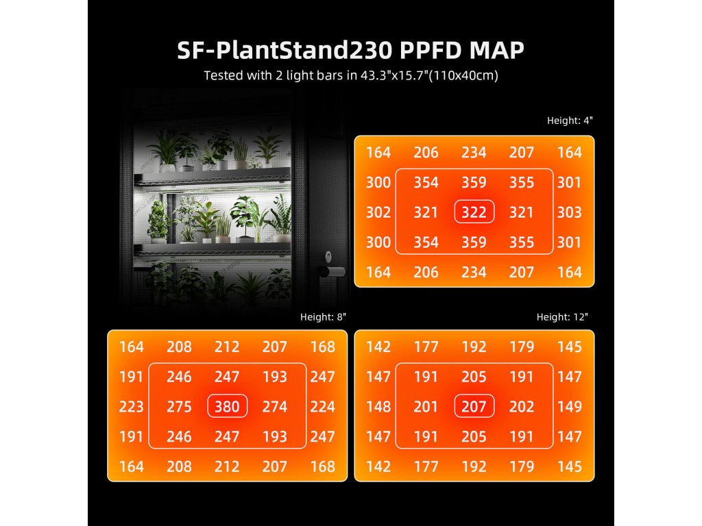 Dieser 6-stufige Ständer mit integrierter LED-Beleuchtung (220 W) und einem hochreflektierenden Anzuchtzelt ermöglicht es Ihnen, die Wachstumsbedingungen Ihrer Pflanzen das ganze Jahr über mühelos zu kontrollieren und zu optimieren.