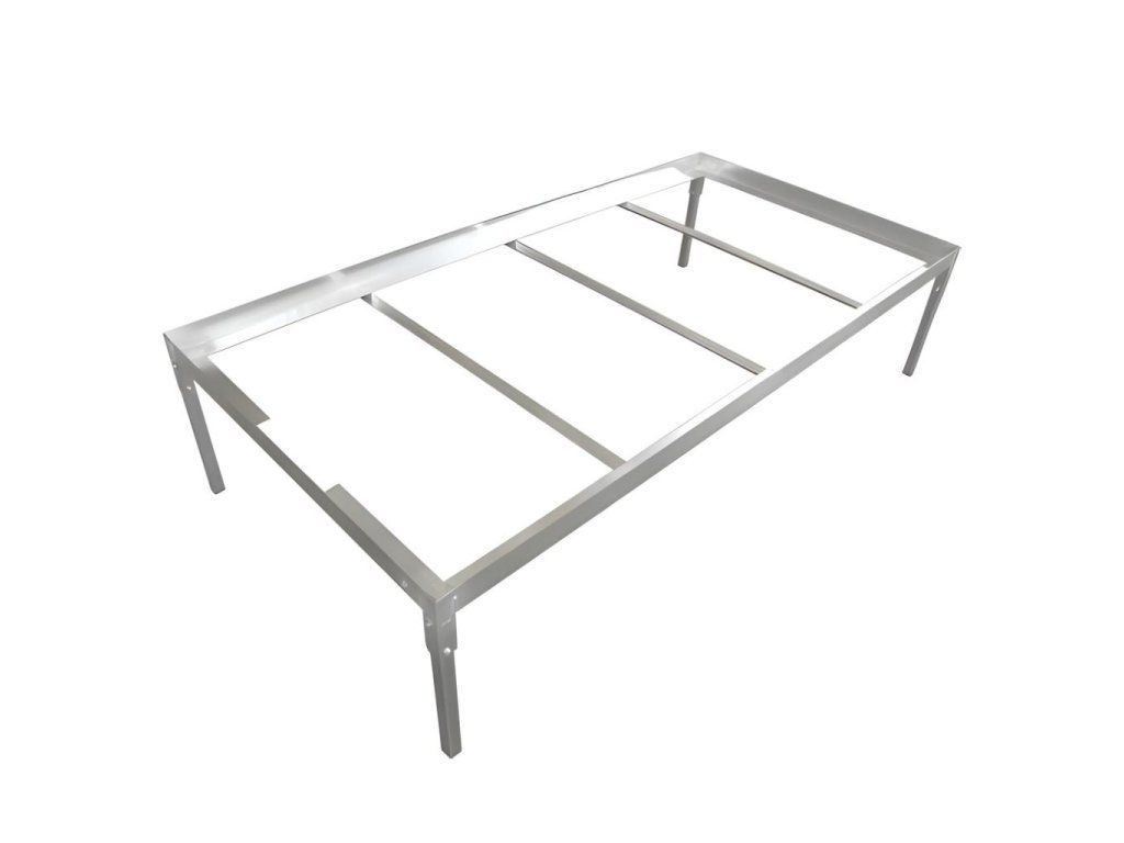 Robuster Stahlanzuchtisch für Ebb&Flow Bewässerungsbehälter in den Maßen 2 × 1 m. Die stabile verzinkte Konstruktion garantiert bei Verwendung in Hydroponiksystemen eine zuverlässige Stütze.Zubehör ist nicht im Lieferumfang enthalten.