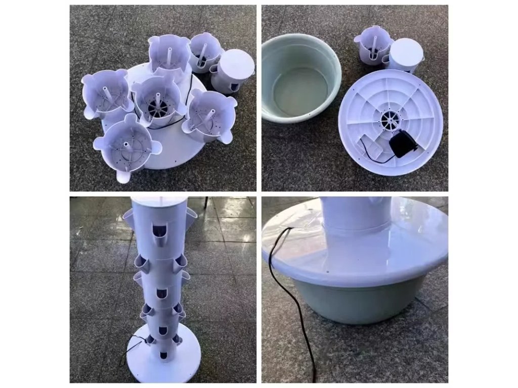Anleitung zum Aufbau und Inbetriebnahme des hydroponischen Vertikalturms1. Vorbereitung der KomponentenVor Beginn der Montage bereite alle Teile vor: